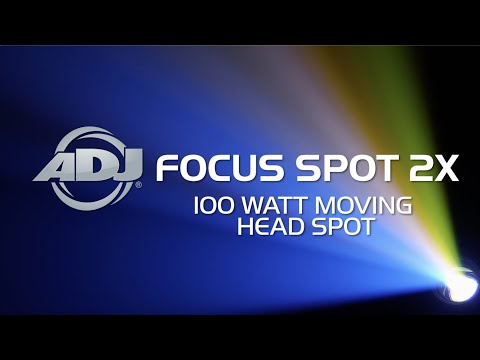 Tête mobile LED 100 W d'ADJ avec une LED UV 3W incluse pour un éclairage noir ou des teintes de couleur supplémentaires. Il comporte deux effets de prisme; un prisme circulaire à 6 facettes et un prisme linéaire à 6 facettes. De plus, ADJ a équipé le Focus Spot 2X d'une roue GOBO avec des GOBO remplaçables, rotatifs et indexables. Les GOBO sont faciles à remplacer en retirant le boîtier supérieur avec une vis qui est sur une charnière. Les GOBO se verrouillent facilement dans et hors de la roue GOBO. Ce moteur est également équipé d'une mise au point motorisée, d'un indexage Gobo, d'un remplacement EZ Gobo et d'un bouton de zoom manuel près de l'objectif pour changer l'angle du faisceau de 16 à 19 degrés.